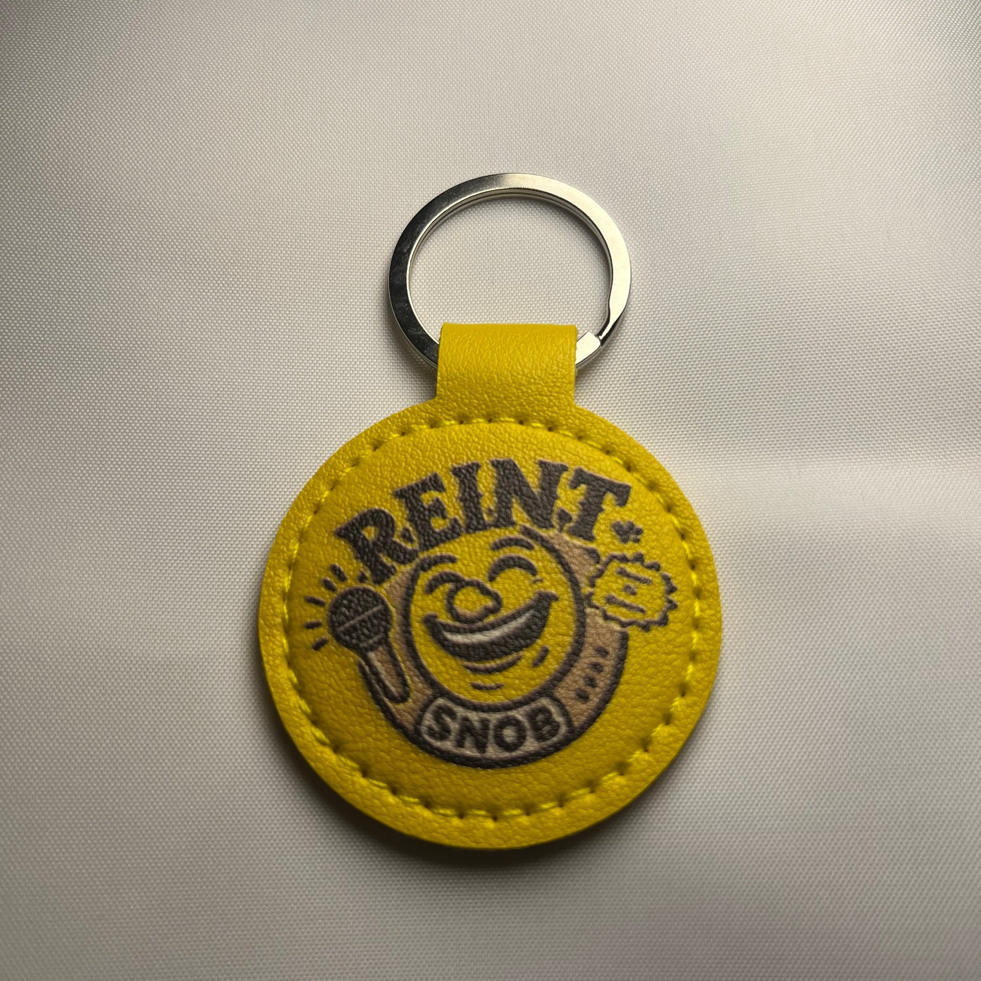 En kul nøkkelring i imitert skinn med rustfri stålring.